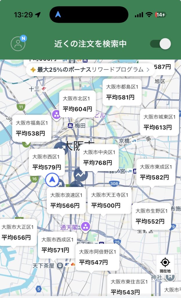 もし1時間以上無音の状態が続くなら、その場所に固執せず、思い切って2〜3km移動してみることをおすすめします。大阪はエリアによって注文の波が激しいため、フットワークの軽さがそのまま報酬に直結します。